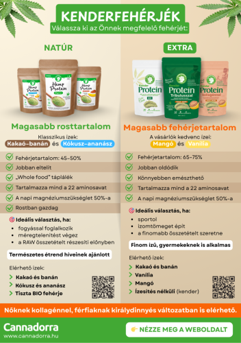 A NATÚR kenderfehérje (RAW minőség) ideális választás mindazok számára, akik étrendjükbe természetes, „teljes értékű” táplálékot szeretnének beilleszteni, magasabb rosttartalommal. A finomabb változatokhoz képest laktatóbb, és kiválóan alkalmas mindennapi fogyasztásra – különösen akkor, ha a minimálisan feldolgozott alapanyagokat és a természetes ízeket részesíti előnyben.