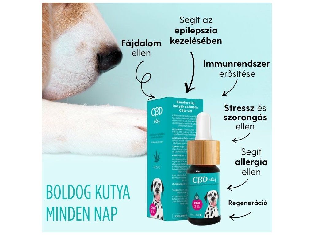 A kutyák számára készült CBD olaj segíthet az epilepszia kezelésének kiegészítésében (használat előtt javasolt állatorvossal konzultálni). Hozzájárulhat az osteoarthritis tüneteinek enyhítéséhez, és segíthet csökkenteni a fájdalmat.