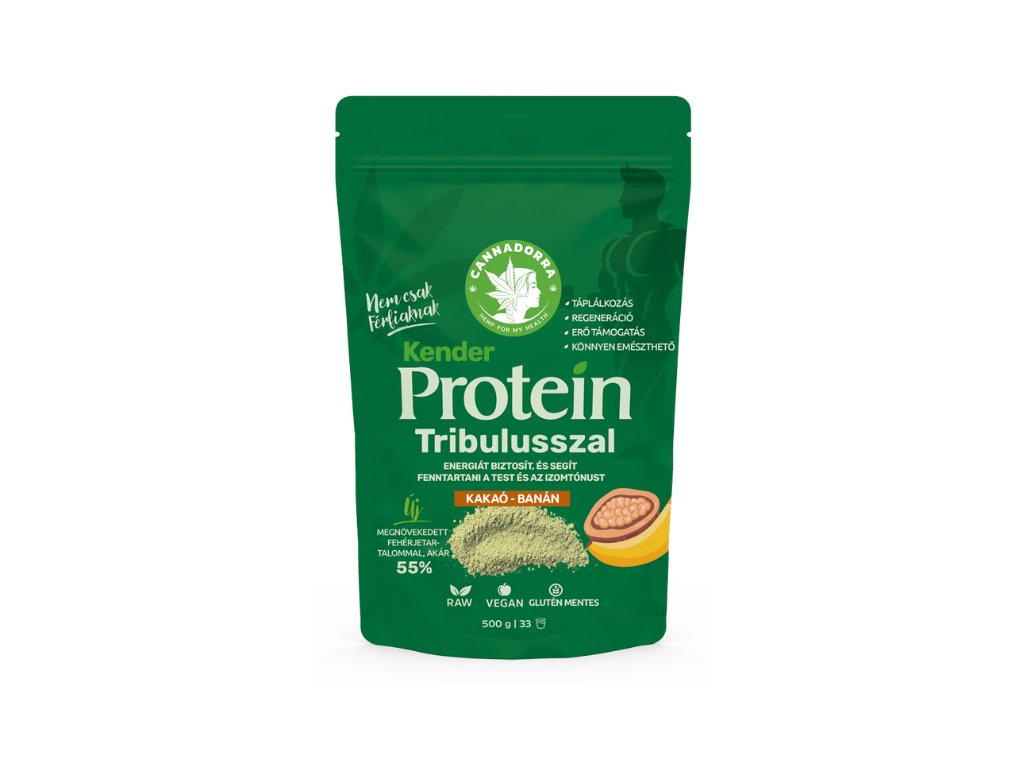 A kakaós banán ízű kenderfehérje 40,5%-ban kiváló minőségű növényi fehérje, amelyet a szuperélelmiszerek közé sorolunk. A természetben előforduló 23 aminosavat tartalmaz (köztük 8 esszenciális aminosavat, amelyek nélkülözhetetlenek a szervezet számára). Az összes telítetlen omega-3, 6 és 9 zsírsavat kiegyensúlyozottan tartalmazza. Emellett a kenderfehérje erősíti a szervezetet is.