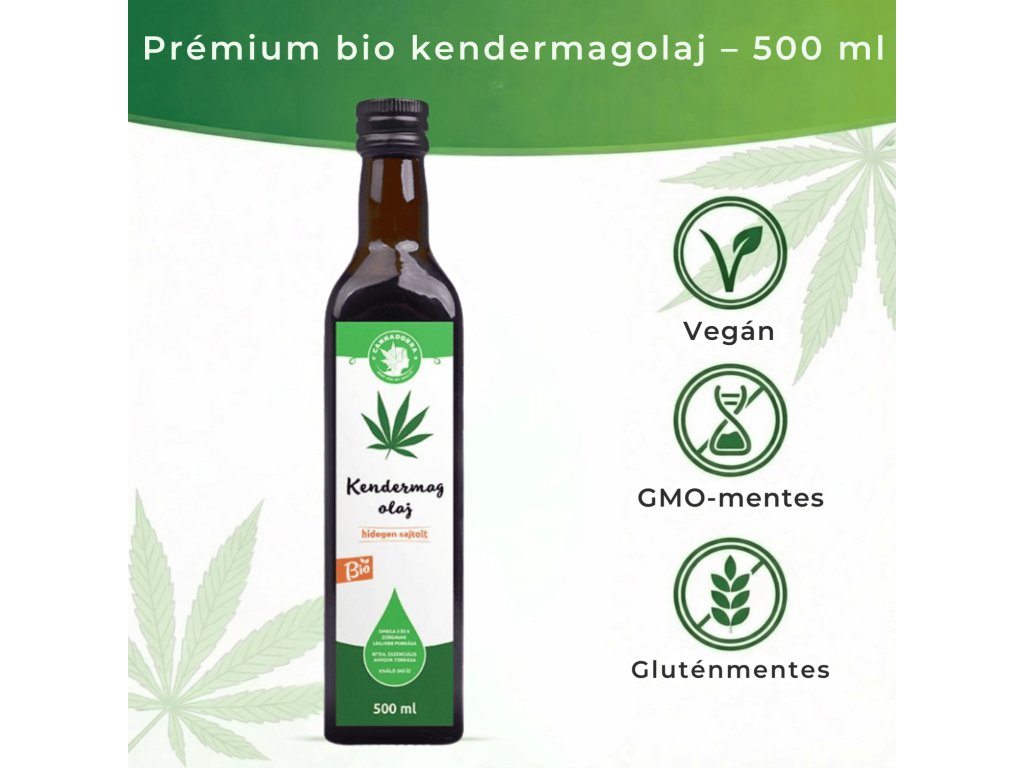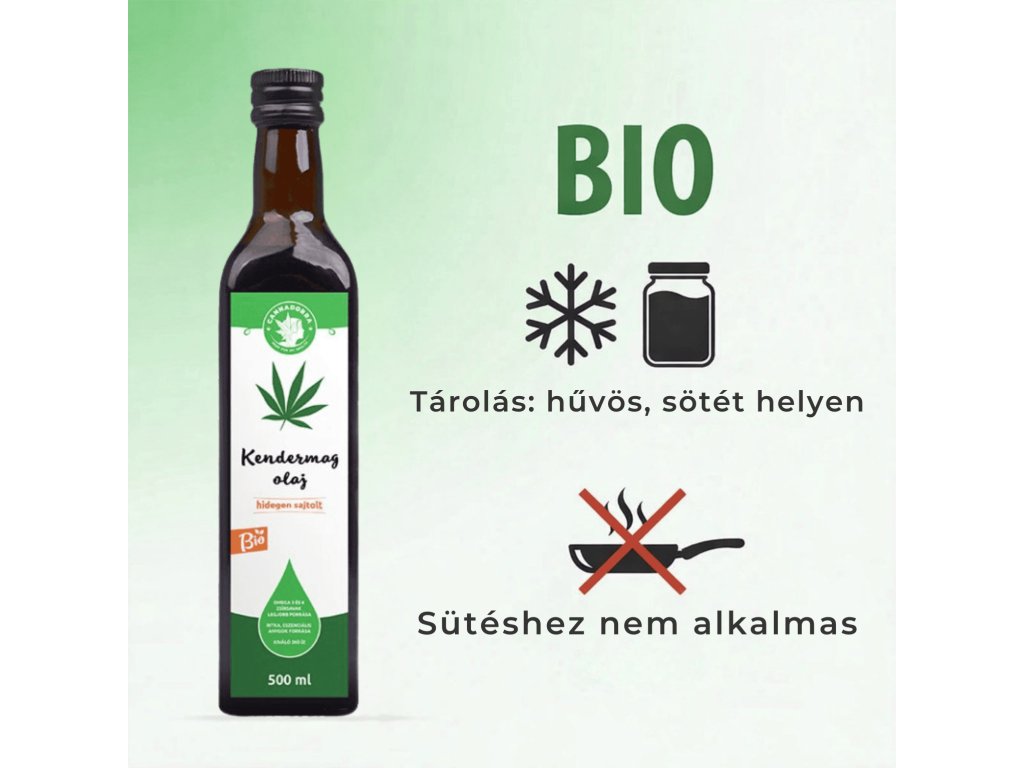 A szerves minőségű BIO kenderolajat hidegen sajtolt kendermagokból nyerik. A legmegfelelőbb növényi olajnak számít, és a lecsóban még az olívaolajat is felülmúlja. A CZ-BIO-002 ökológiai gazdálkodás terméke.